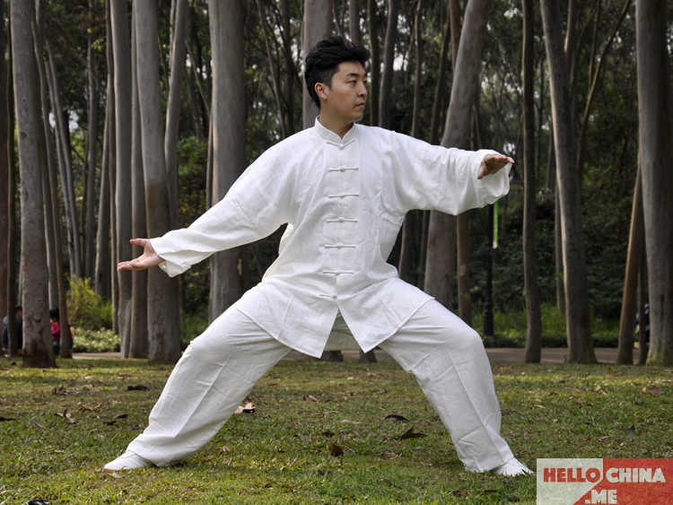 Для таких тренировок не совсем подойдёт такая одежда, как мы привыкли видеть в спортзалах. Форма не должна облегать тело, дабы не нарушить то самое пространство лёгкости. Одежда должна быть лёгкого кроя, свободная. Желательно выбирать натуральные ткани, например лён. Заниматься Тай Чи следует на босую ногу.