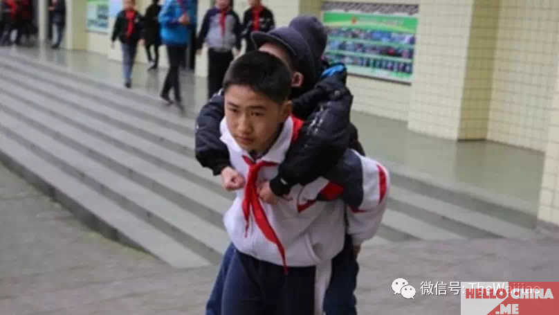 Мы все иногда нуждаемся в помощи близкого нам человека. Так и 12-летний мальчик по имени Сюй Бинъян помогал своему другу на протяжении шести лет. Мальчик по имени Чжан Цзе не может ходить, как все ребята его возраста. Поэтому Сюй Бинъян носит своего приятеля на руках в школу и не только. По мимо этого, Сюй каждое утро собирает своему другу контейнеры с едой и помогает обедать во время школьного перерыва.