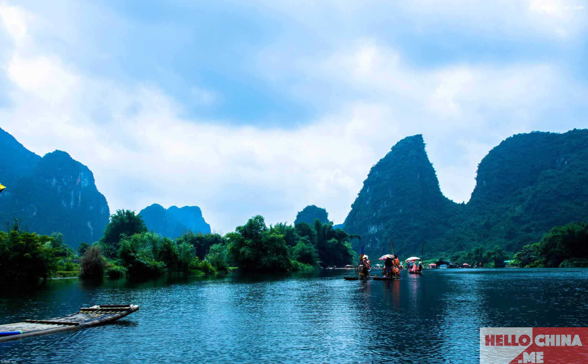 Гуйлинь окружен волнистыми холмами различной формы и проходит по живописной реке Ли. Извилистый водоток от Гуйлиня до Яншо — самая красивая часть. Пики вдоль реки образуют самый большой карстовый ландшафт в мире. Гребля на каноэ по рябистой реке с пышными бамбуковыми рощами на берегах — все равно что находиться внутри бесконечного свитка пейзажной живописи. После высадки в Яншо настоятельно рекомендуем прогулку или прокатиться на велосипеде по идиллической сельской местности.